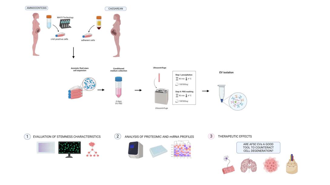 Gli interessi di ricerca di questo gruppo sono focalizzati sullo studio delle caratteristiche biologiche delle cellule staminali umane isolate dal liquido amniotico umano del secondo trimestre e ottenuto al momento del parto. In particolare, si studiano il potenziale rigenerativo e le proprietà immunomodulatorie dovute ai fattori paracrini rilasciati come molecole secrete solubili e vescicole extracellulari in diverse patologie degenerative caratterizzate da uno squilibrio redox.